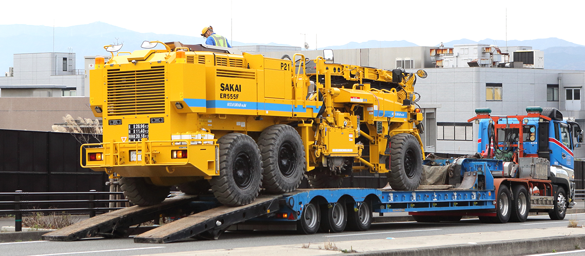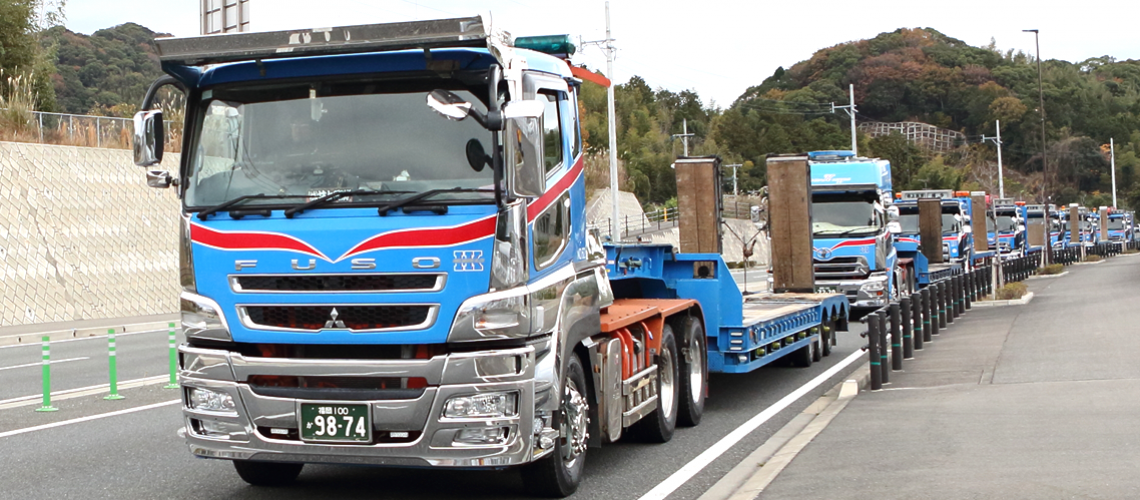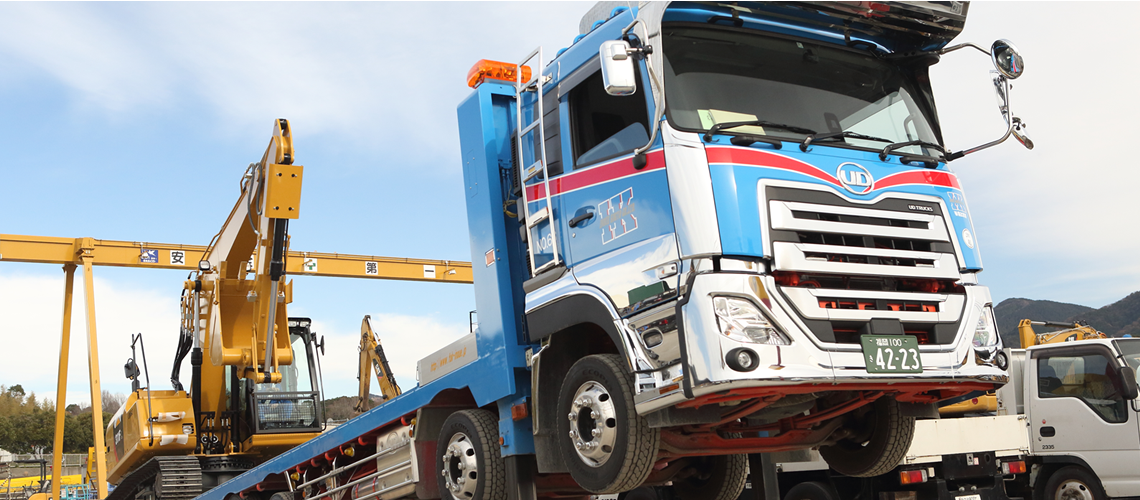 現在は大型トレーラー3台、10t車15台、6t車3台などを所有しており、自社の大型建設機械のみではなく、多くの土木会社さま、建設機械のレンタル業各社さまの機材の運搬業務を行います。